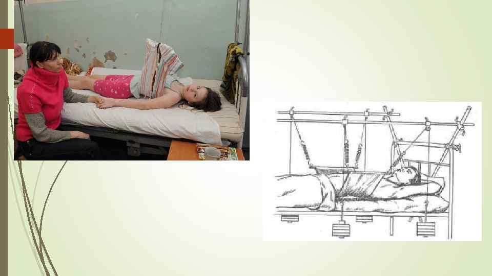 При небольшой компрессии не более 1/3 тела позвонка показан функциональный метод лечения. Больной укладывается на щит с приподнятым головным концом на 30 -40 см При переломе ШОП – вытяжение петлей Глиссона При травме ГОП и ПОП – за подмышечные впадины