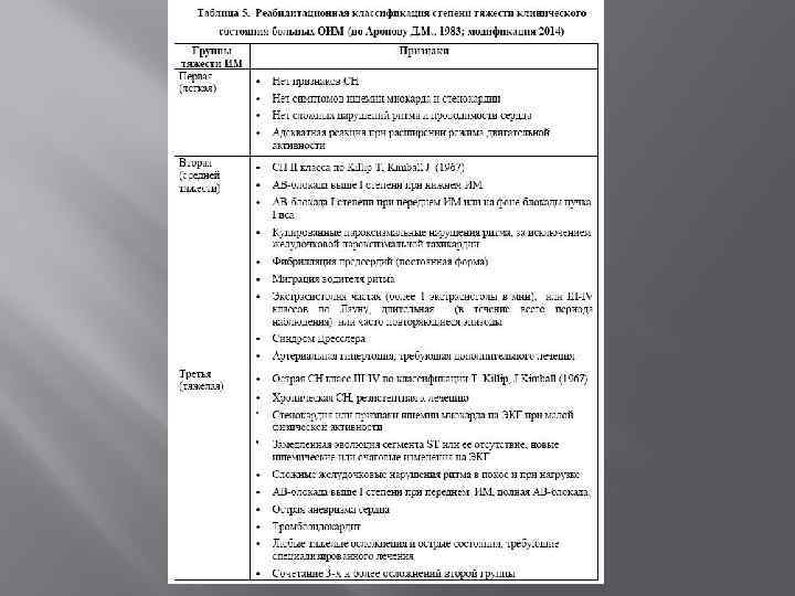 Критерии приема больных ОИМп. ST в стационарное отделение кардиологической реабилитации: освоение больным не менее третьей ступени двигательной активности (самообслуживание, выход в коридор и ходьба на расстоянии не менее 500 метров в 2 -3 приема без неприятных ощущений, подъем по лестнице на один этаж.