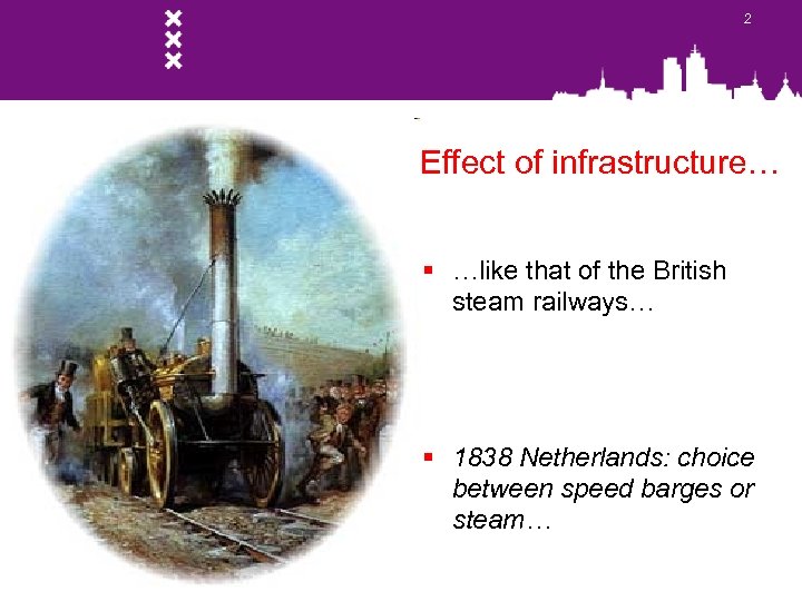 2 Effect of infrastructure… § …like that of the British steam railways… § 1838 Netherlands: choice between speed barges or steam…