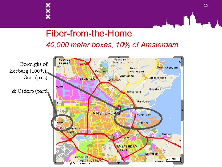 25 Fiber-from-the-Home 40, 000 meter boxes, 10% of Amsterdam Boroughs of Zeeburg (100%), Oost (part) & Osdorp (part)