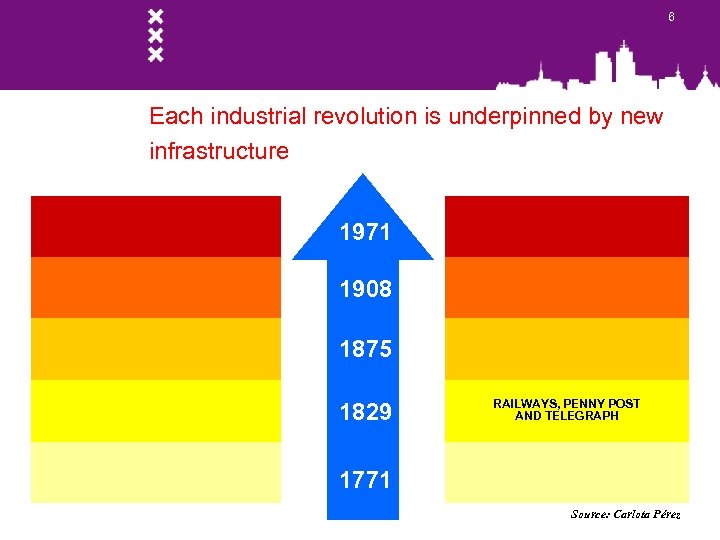 6 Each industrial revolution is underpinned by new infrastructure 1971 1908 1875 1829 RAILWAYS, PENNY POST AND TELEGRAPH 1771 Source: Carlota Pérez