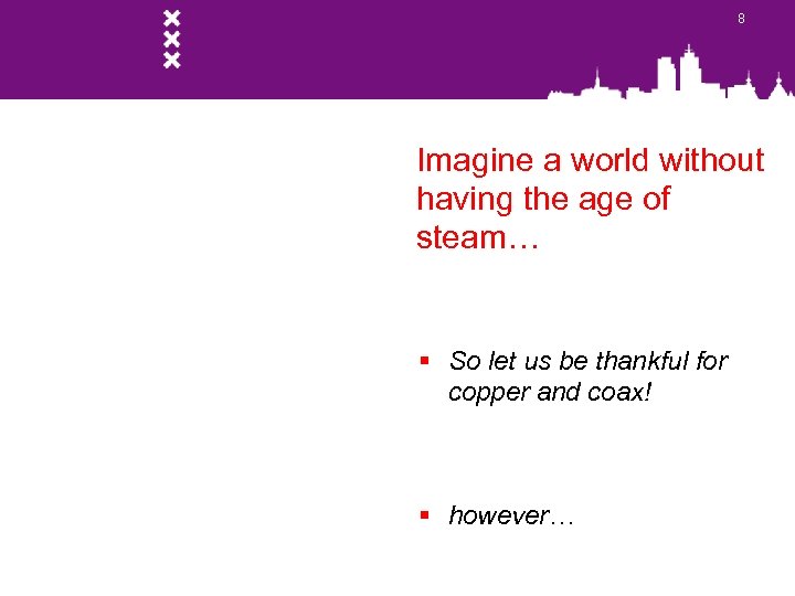8 Imagine a world without having the age of steam… § So let us be thankful for copper and coax! § however…