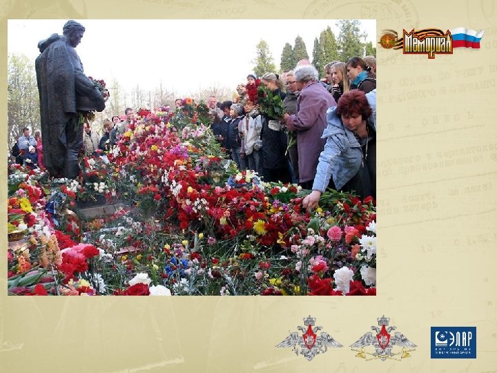 Развитие проекта Ø Обработка документов архива ВМФ – дополнительные данные о безвозвратных потерях. Ø Поиск и обработка документов по военнопленным и в архивах других ведомств: Росархив (РГВА), МИД, ФСБ, СВР и др. . Ø Работа комиссии по военнопленным по розыску и получению информации по военнопленным из других стран (СНГ, Европа, США). Ø Работа ВМЦ по персональному своду данных ОБД Мемориал.