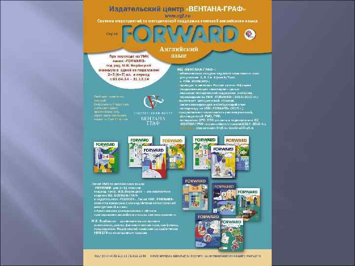 УМК серии «FORWARD » для основной школы совместное издание ИЦ «ВЕНТАНА-ГРАФ» и издательства «Pearson Education Limited» • созданы на основе стандартов второго поколения • в ФП на 2012 -2013 учебный год • входят в состав системы учебников для основной школы ИЦ «ВЕНТАНА-ГРАФ» «Алгоритм успеха» • обеспечивают преемственность в изучении английского языка