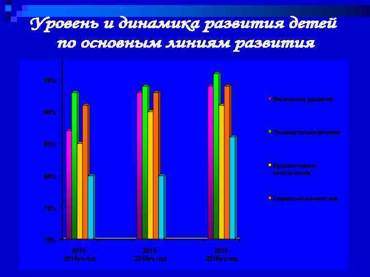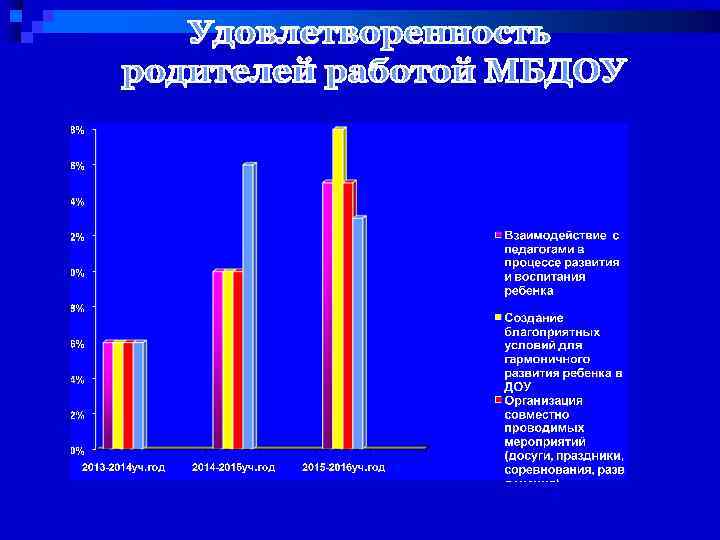 n n n n Реализация инновационного проекта как составной части «Программы развития МБДОУ» позитивно повлияла на процессы развития учреждения и повышение статуса детского сада среди других ДОУ города. Внедрение в практику работы МБДОУ модели индивидуализации взаимодействия детского сада и семьи способствовало достижению высоких результатов в воспитании и образовании де тей, а также повышению психолого педагогической компетентности педагогов и родителей. Наличие творческой атмосферы в учреждении способствовало включению всех педагогов в инновационную деятельность, освоению ими современных технологий по работе с семьей. В МБДОУ сложилась определенная система управленческого содействия педагогам в освоении индивидуализации взаимодействия с семьями воспитанников, опирающаяся на современные подходы. Усовершенствовалось научно методическое и дидактическое обеспечение коррекционно образовательного процесса, пополнилась материально техническая база; в системе управления ДОУ использовались современные информационно коммуникационные технологии. Организация системы методического содействия педагогам включала в себя разнообразные формы работы с педагогами: деловые игры, мастер классы, тренинги, педагогические дискуссии, а также лекции и индивидуальные консультации. Расширились и укрепились связи МБДОУ с наукой, социумом, с другими ДОУ города.