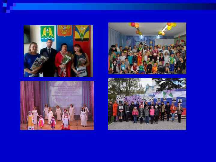 Разработаны и внедрены эффективные формы взаимодействия с семьей: n n традиционные праздники и акции для всех участников образовательного процесса: «День знаний» , «Осенняя ярмарка» , «Прощание с елочкой» , «Зарница» , «Масленица» , «Благовещенье» , «День рождения детского сада» , «День семьи» , «День защиты детей» творческие конкурсы для детей и родителей: «Зоопарк из овощей» , «Новогодняя игрушка моей семьи» , «Птицы нашего края» , «Осенний букет» , «Мой дом, мой двор» , «Этих дней не смолкнет слава…» , «Природные зоны Сибири» , «Герб нашей семьи» , «Самое смешное фото» и др.