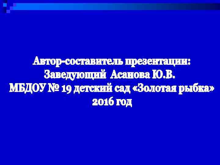 Авторы инициативы: n Ю. В. Асанова. , заведующий МБДОУ № 19 «Золотая рыбка» n М. А. Волошина. , старший воспитатель