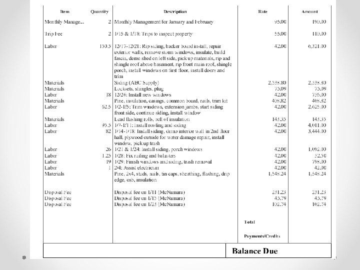 Reports & Reviews CONTENT • • • Detailed description of work or activities done. Pictures of work Estimates and contracts Building permits, lead reports Copies of leases, notices to tenants etc Receipts & Invoices