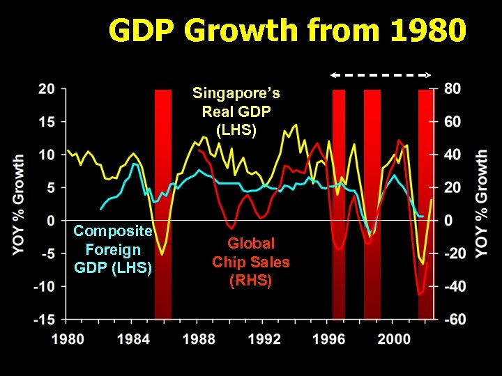 GDP Growth from 1980 Singapore’s Real GDP (LHS) Composite Foreign GDP (LHS) Global Chip Sales (RHS)
