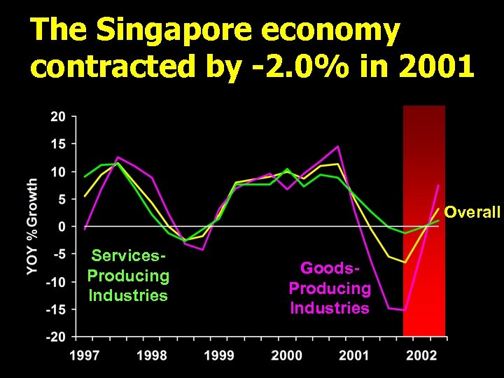 The Singapore economy contracted by -2. 0% in 2001 Overall Services. Producing Industries Goods. Producing Industries