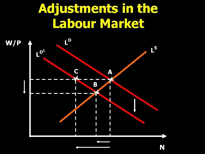 Adjustments in the Labour Market LD W/P LD LS 1 C A X X B X N