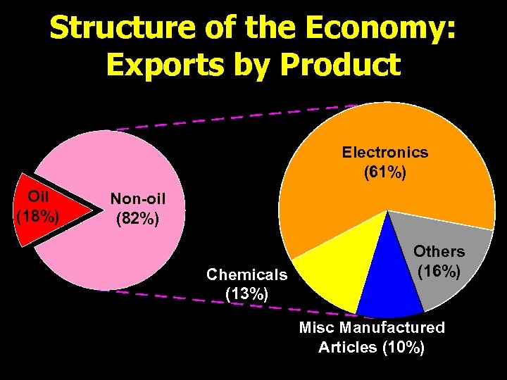 Structure of the Economy: Exports by Product Electronics (61%) Oil (18%) Non-oil (82%) Chemicals (13%) Others (16%) Misc Manufactured Articles (10%)