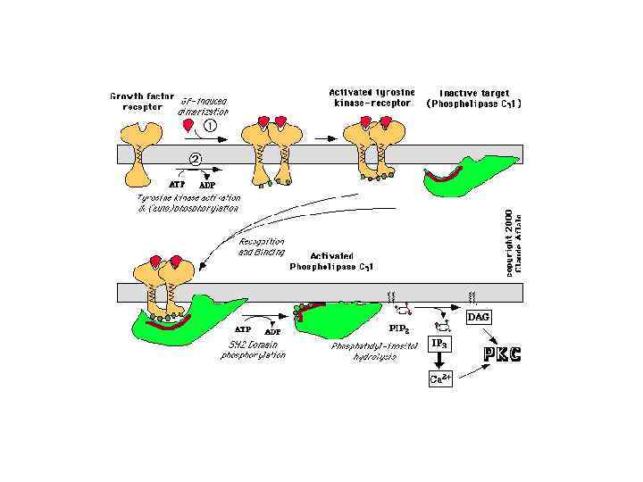 РЕЦЕПТОРНАЯ ТИРОЗИНКИНАЗА 1 2 3 1 – внеклеточный N-концевой участок, связывающий агонисты; 2 – трансмембранный участок; 3 – внутриклеточный тирозинкиназный домен