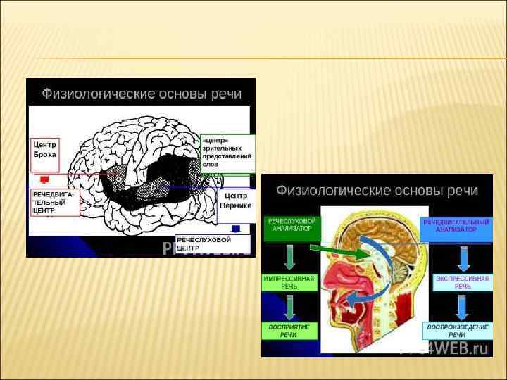 АНАТОМИЯ И ФИЗИОЛОГИЯ РЕЧИ Речь – продукт психической деятельности человека и результат сложного взаимодействия разных мозговых структур: Дыхательный отдел + Фонаторный отдел + Артикуляционный отдел + Нервная система. Дыхательный отдел – обеспечивает речевое дыхание (короткий объемный вдох, продолжительный выдох). Состоит из носовой полости, носоглотки, трахеи, бронхов, легких, грудной клетки, межреберных мышц, диафрагмы. Фонаторный отдел – обеспечивает наличие фонации (голоса). Состоит из гортани с расположенными в ней голосовыми складками = связками. Связки располагаются в трахее, поперек неё, если связки раздвинуты (отдыхают) = просто дыхание, если связки сомкнуты (напряжены), то они перекрывают трахею и воздух из легких не может выйти, он (воздух) прорывается сквозь сомкнутые голосовые связки, вызывая их дрожние = голос. Артикуляторный отдел – обеспечивает такие условия (путем перегородок, смычек и др. ) выхода воздуха во время речи, которые образуют различные речевые звуки. Состоит из губ, зубов, твердого неба, мягкого неба, глотки, языка, щек, челюстей.
