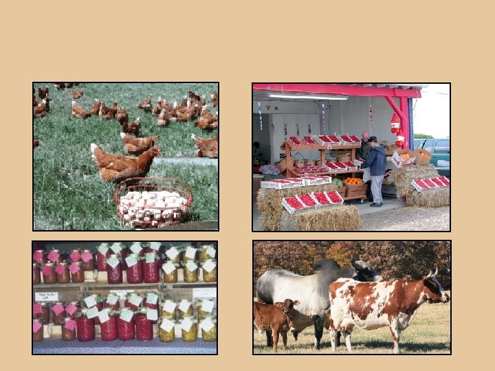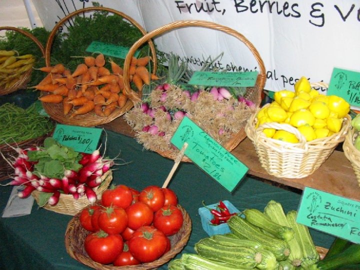 Ethnic vegetables Kid goats for religious holidays Heirloom vegetables or fruits Pesticide-free fruit Free-range chicken eggs Duck or turkey eggs 3/16/2018 27