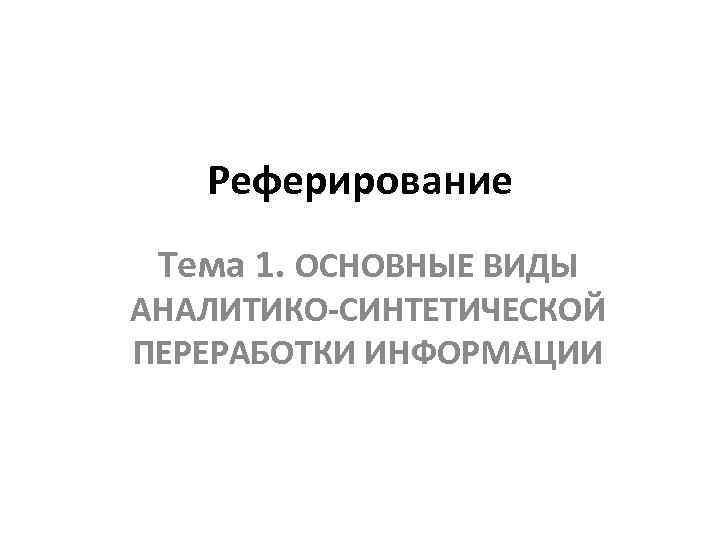 Реферирование Тема 1. ОСНОВНЫЕ ВИДЫ АНАЛИТИКО СИНТЕТИЧЕСКОЙ ПЕРЕРАБОТКИ ИНФОРМАЦИИ