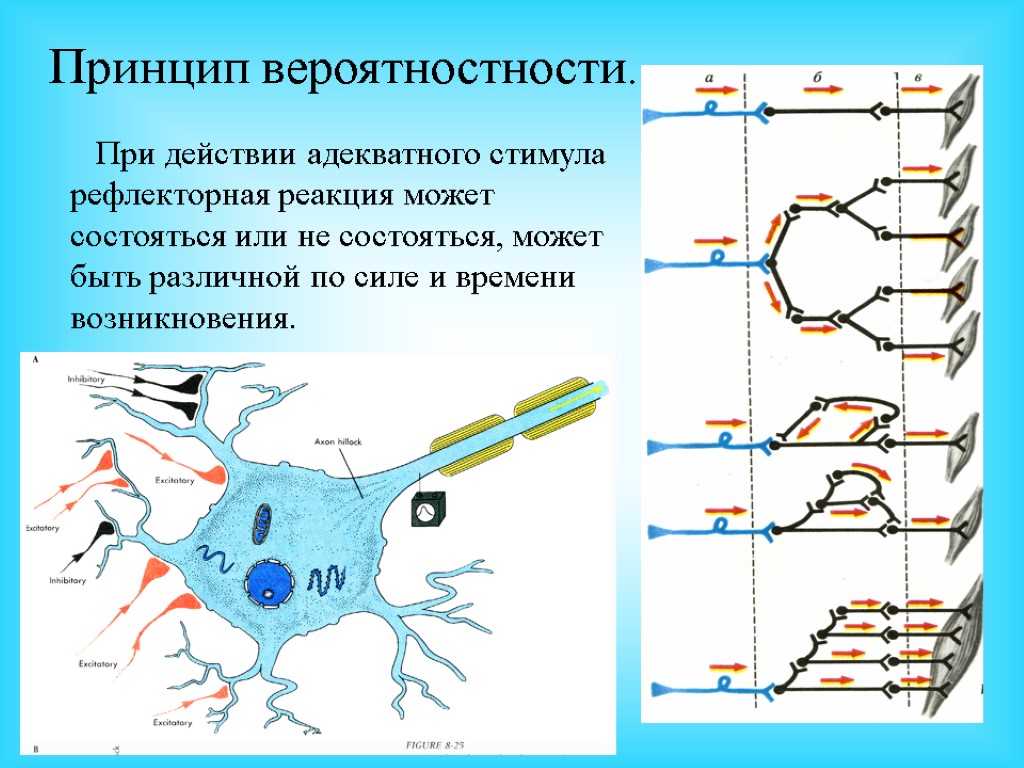 Принцип вероятностности. При действии адекватного стимула рефлекторная реакция может состояться или не состояться, может быть различной по силе и времени возникновения.