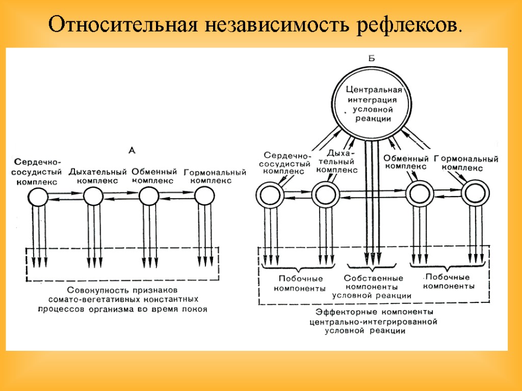 Принцип цефализации и кортиколизации функций. Чем выше уровень организации ЦНС, тем больше рефлекторных центров подчиняется коре больших полушарий. При этом спинальные двигательные программы не могут функционировать самостоятельно, но с помощью коры БП вовлекаются в разнообразные формы двигательной активности.