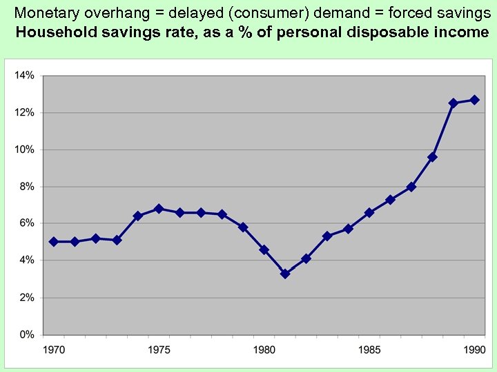 Monetary overhang = delayed (consumer) demand = forced savings Household savings rate, as a % of personal disposable income