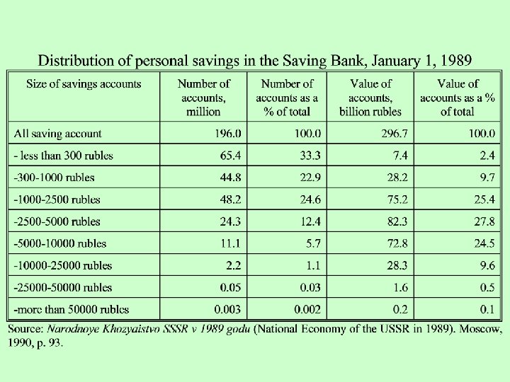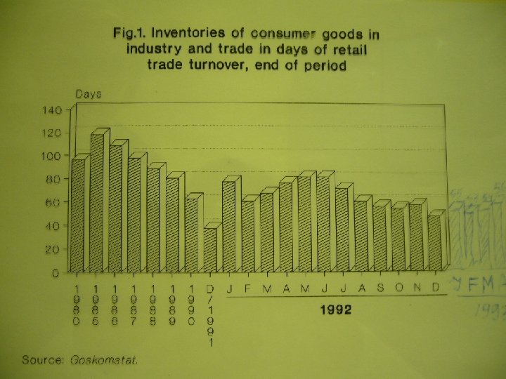 Monetary overhang = delayed (consumer) demand = forced savings • Definition - the gap between money demand supply at fixed prices • Personal savings rate increased • Long-run level - 5%, in 1990 - 13. 9%, in 1991 22% • Inventories in trade decreased sharply in 1985 -1991 • from 100 -120 days of trade in the 1980 s to 30 -40 in December 1991 • When prices were deregulated, trade stocks stabilized at the level of 50 -60 days