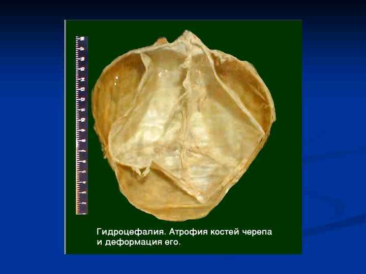Гидроцефалия. Резко расширенные желудочки головного мозга заполнены ликвором.