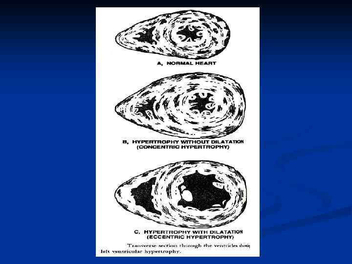 Гипертрофия миокарда, стадия компенсации. При электронно микроскопическом исследовании количество и размеры митохондрий (1) и миофибрилл увеличены, структура большинства митохондрий сохранена