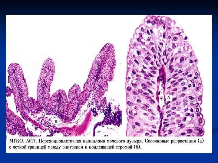 Гипертрофия мочевого пузыря при гиперплазии предстательной железы. Предстательная железа увеличена, узловатого вида, просвет уретры сужен, стенка мочевого пу зыря утолщена. Слизистая оболочка тусклая, с мелкими кровоизлияниями.