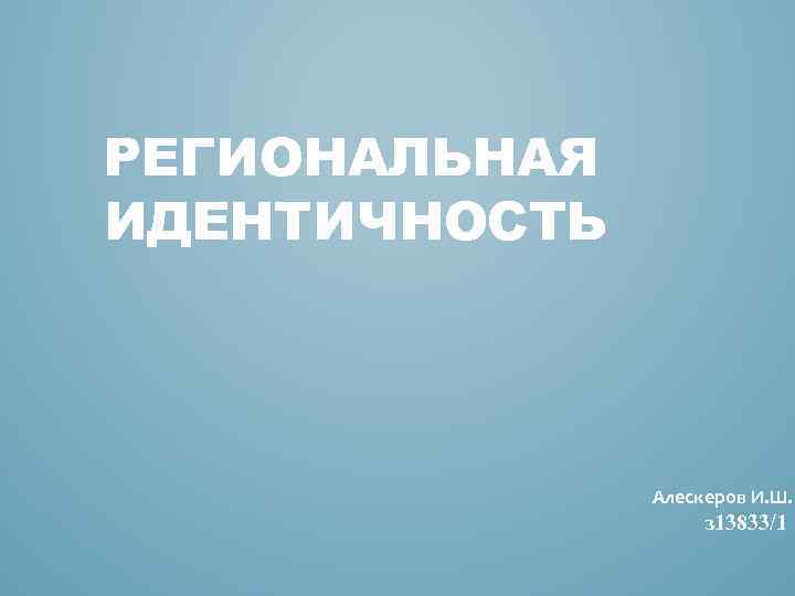 РЕГИОНАЛЬНАЯ ИДЕНТИЧНОСТЬ Алескеров И. Ш. з 13833/1