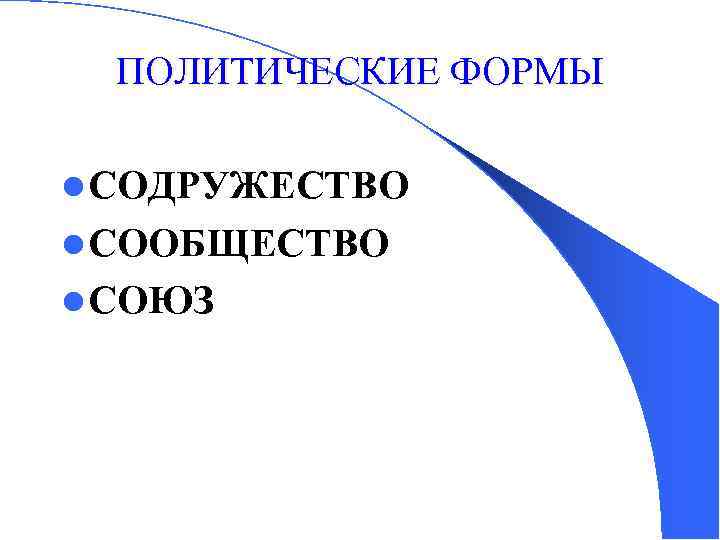 ПОЛИТИЧЕСКИЕ ФОРМЫ l СОДРУЖЕСТВО l СООБЩЕСТВО l СОЮЗ
