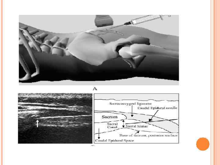 Популярность ультразвукового наведения при выполнении нейроаксиальных блоков продолжает расти Позволяет: • Четко определить среднюю линию тела • Определить уровень пункции • Локализовать эпидуральное пространство • Измерить расстояние от кожи до эпидурального пространства • Оценить необходимый угол наклона иглы