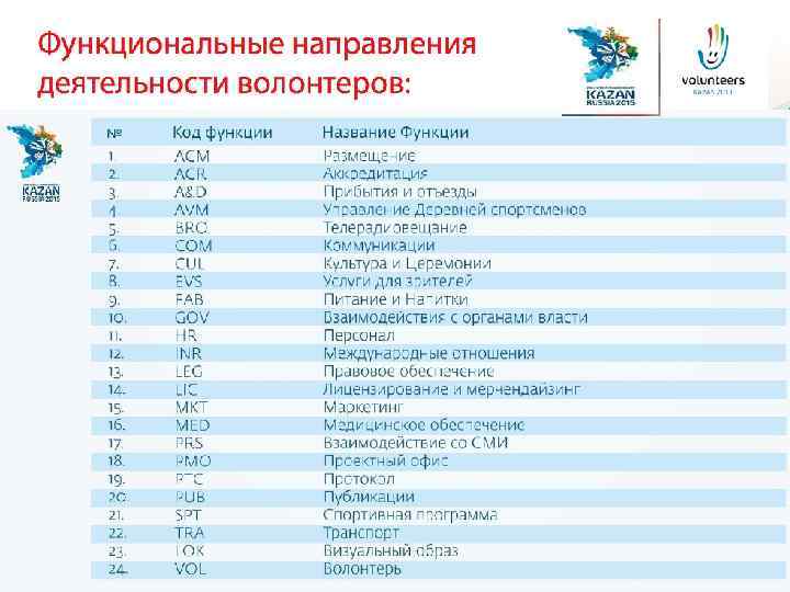 СРОКИ Регистрация - с 20 сентября по 31 декабря 2014 г. Рекрутинг - с 20 ноября 2014 года по 31 января 2015 г. (база выгружается партиями каждое 20 е число месяца) Обработка анкет - февраль 2015 г. Формирование и утверждение итогового списка - март 2015 г. Обучение - апрель – май 2015 г. Отправка делегации в г. Казань – 18 июля 2015 г.
