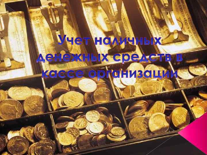 Наличные денежные средства организации представляют собой совокупность денег, находящихся в кассе и денежные документы Порядок учета наличных денег в кассе определен Положением о Порядке ведения кассовых операций с банкнотами и монетами банка России на территории РФ от 12 октября 2011 № 373 -П