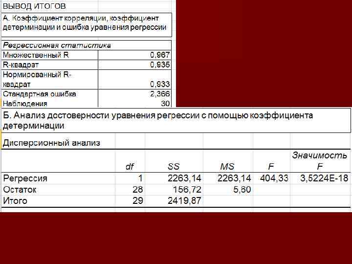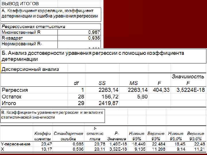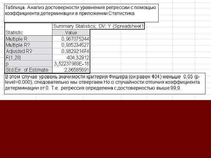 Так как F (404) > Fst (4, 2), с вероятностью Р 0, 95 мы отвергаем нулевую гипотезу и признаем коэффициент детерминации статистически значимым