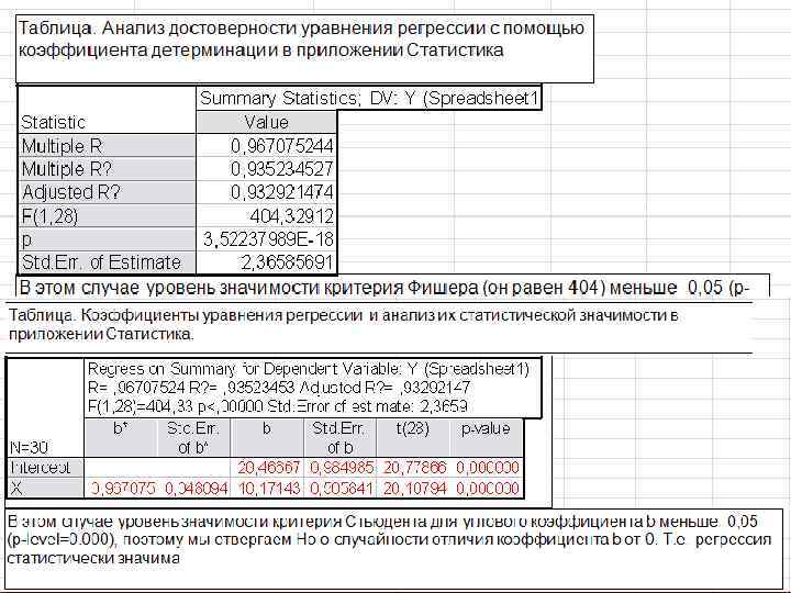 Так как tr (20. 1) > tst (1. 70), с вероятностью Р 0, 95 мы отвергаем нулевую гипотезу и признаем угловой коэффициент b статистически значимым