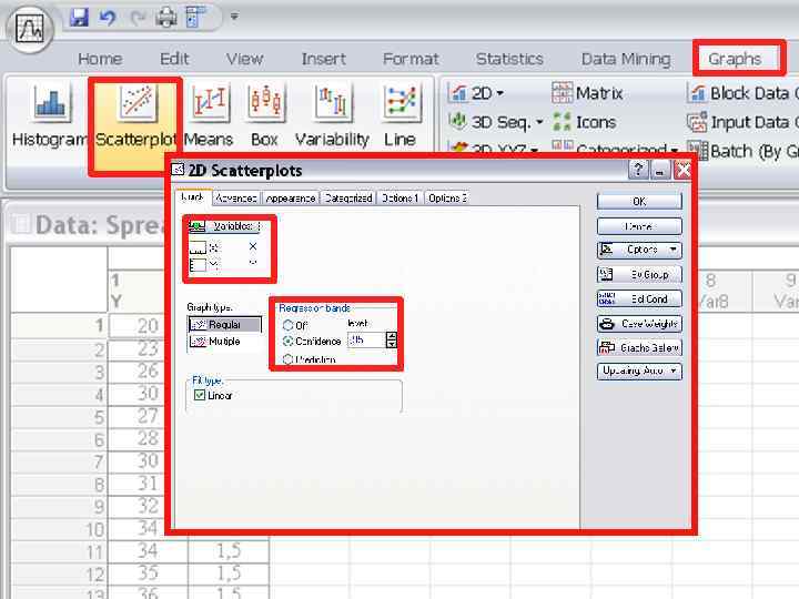 Доверительная зона регрессии 95 % Доверительная зона регрессии