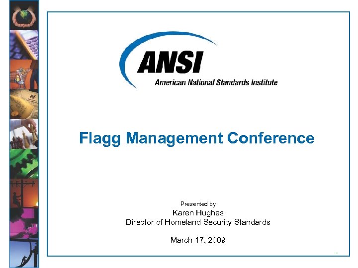Flagg Management Conference Presented by Karen Hughes Director of Homeland Security Standards March 17, 2009 19