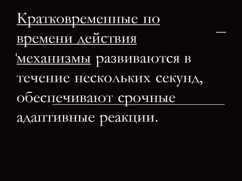 Кратковременные по времени действия механизмы развиваются в течение нескольких секунд, обеспечивают срочные адаптивные реакции.