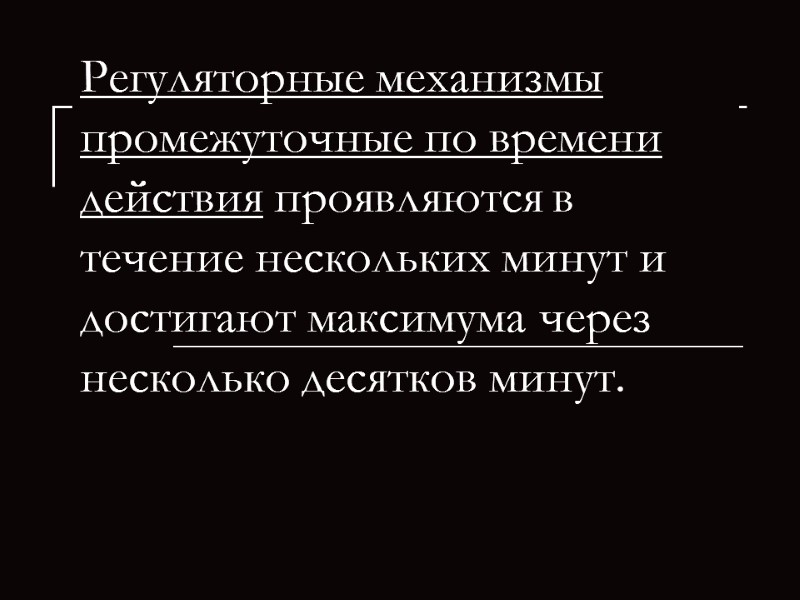 Регуляторные механизмы промежуточные по времени действия проявляются в течение нескольких минут и достигают максимума через несколько десятков минут.