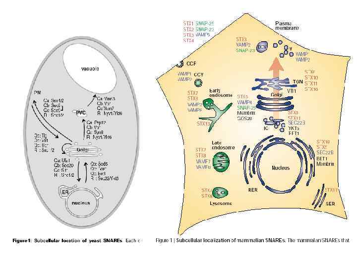 Примеры SNARE-комплексов Как правило: R – v-SNARE, Q - t-SNARE