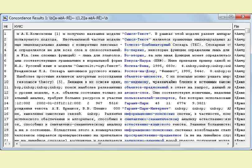 Регулярные выражения в корпус-менеджере Ant. Conc [ http: //www. antlab. sci. waseda. ac. jp/antconc_index. html] сайт программы: