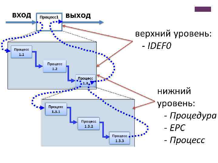 + Нотация IDEF 0 служит прежде всего для описания состава процессов, а не их последовательности.
