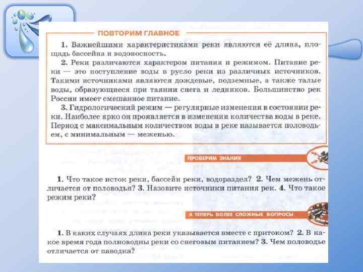 Основные характеристики реки ØИсток ØУстье ØРечная система ØБассейн реки ØПаводок ØМежень ØВодораздел ØРечная долина ØРежим реки ØПитание реки ØПойма ØПадение реки ØПороги ØУклон реки ØВодопады ØРасход воды ØДельта ØГодовой сток ØПоловодье