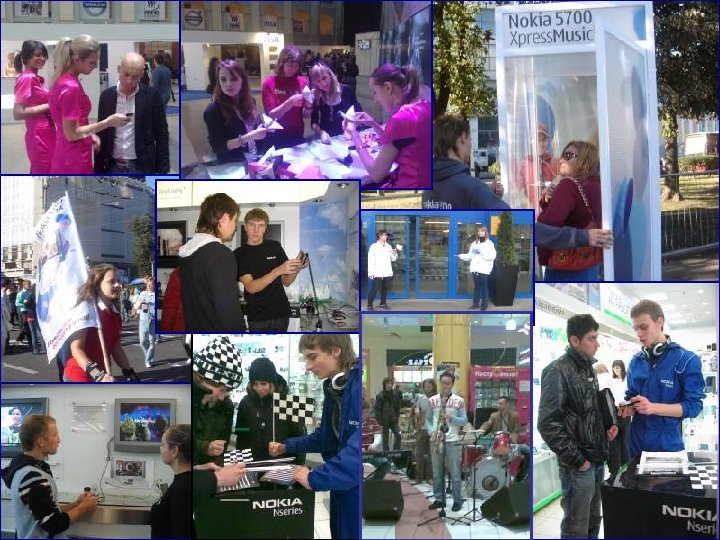 Nokia сентябрь 2007 – октябрь 2008 г За весь период работы с брендом Nokia было проведено в общей сложности 15 программ различных по сложности, масштабу и механикам. В течение этих программ 186 232 человека получили консультацию по телефонам Nokia, из которых поучаствовали в акциях 26 187 человек.