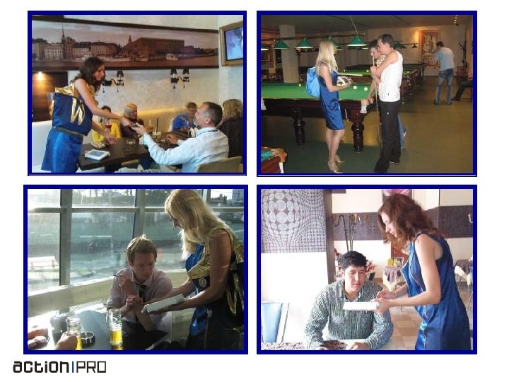 Сигареты Winston Premier июнь-август 2008 г Цели и задачи: • Стимулировать пробу нового продукта курильщиками конкурентных марок. • Проведение короткого интерактивного теста, используя сенсорные компьютеры. • Произвести мониторинг и анализ активности продаж в каждом магазине. Условия: • Продолжительность акции: 8 недель; • Кол-во персонала единовременно: 46 человек; • Категория промо-персонала: девушки 21+, модельная внешность. • Работа в сетевых каналах сбыта + точки Ho. Re. Ca. Результаты: • Итого за акцию продано 20 415 пачек = выполнение нормы 167%, • 13 198 человек поучаствовали в интерактивном тестировании.
