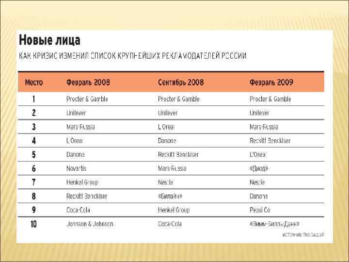 КРУПНЕЙШИЕ РЕКЛАМОДАТЕЛИ 2010 Г. http: //www. akarussia. ru/en/node/919