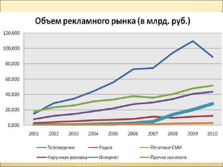 Значительное снижение эффективности рекламы в СМИ и перераспределение рекламных бюджетов в пользу интегрированного маркетинга. .
