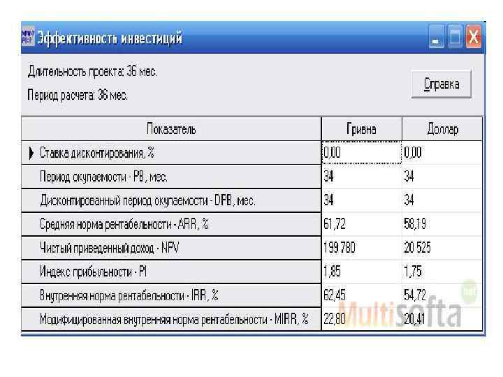 PROPSPIN (Project profile screening and preappraisal information system) • PROPSPIN состоит из двух частей: блока ввода данных и генератора отчетов. В первом задаются начальные инвестиции, данные об исходных материалах, стоимость рабочей силы, комплектующих и др. Некоторые параметры могут приниматься по умолчанию. • PROPSPIN представляет собой стандартный пакет, позволяющий провести предварительный финансовый анализ инвестиционного роста. Система может быть использована при составлении бизнес-плана только как вспомогательное средство. • В силу реализации в среде электронных таблиц пакет обладает всеми достоинствами и недостатками этого метода.