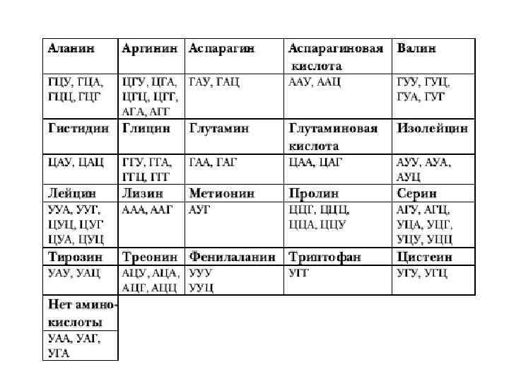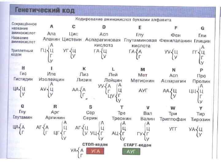 Основные аминокислоты и их обозначения • Аланин A Ала • Аргинин R Арг • Аспарагиновая кислота D Асп • Аспарагин N Асн • Валин V Вал • Гистидин H Гис • Глицин G Гли • Глутаминовая кислота E Глу • Глутамин Q Глн • • • Изолейцин I Иле Лейцин L Лей Лизин K Лиз Метионин M Мет Пролин P Про Серин S Сер Тирозин Y Тир Треонин T Тре Триптофан W Три Фенилаланин F Фен Цистеин C Цис