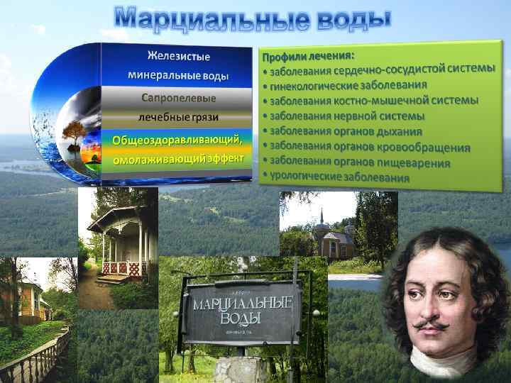 q исторический опыт развития курортов и туризма Ø Просветительский - начало XVIII в. – начало XIX в. – создание Петром I первого курорта (Марциальные Воды – 1718 г. ) Ø Предпринимательский - начало XIX в. – 1917 г. – зарождение курортов и очаговое рекреационное освоение территории Ø Организованно-централизованный: - 1917 -1960 гг. – формирование социалистической системы курортного лечения, отдыха и туризма - 1960 -1990 гг. – рост масштабов курортной деятельности и формирования региональных рекреационных систем Ø Трансформационный - с 1991 г. – застой и начало трансформаций в функциональной и территориальной структуре санаторно-курортной деятельности и туризма