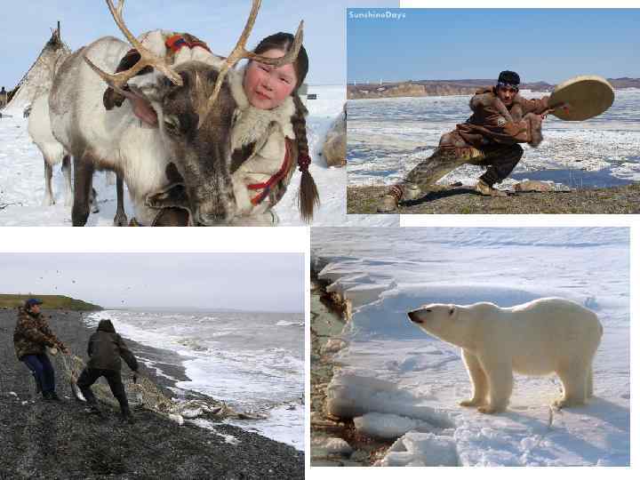 Природные и социокультурные особенности Северной зоны • Занимает 64% территории России • Экстремальность природно-климатических условий (продолжительность снежного покрова – 240 -280 дней; полярная ночь, многолетняя мерзлота) • Незначительная контрастность ландшафтов • Сырьевая ориентация хозяйственной деятельности (добыча руд металлов, нефти, газа, угля, золота, алмазов, апатитов) • Низкая экологическая емкость природной среды • Охраняемые территории – не более 3% площади • Слабая освоенность территории • Малочисленность и своеобразие этнической структуры населения